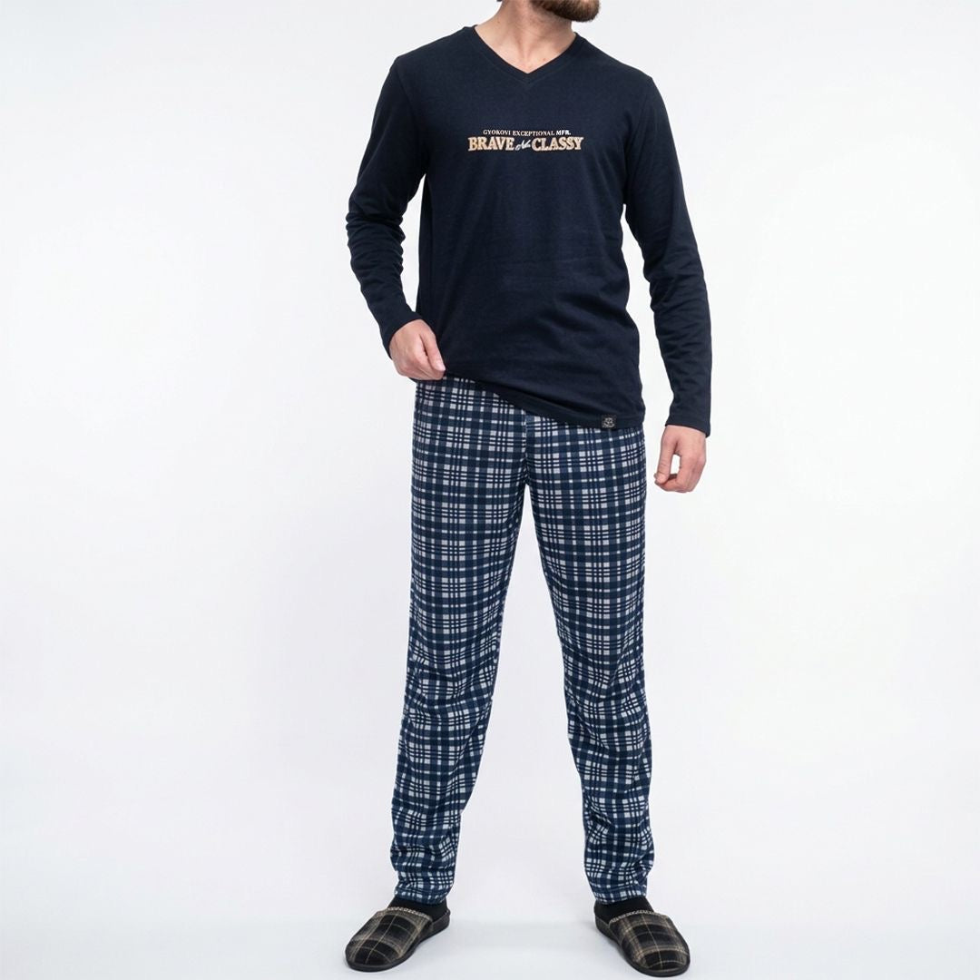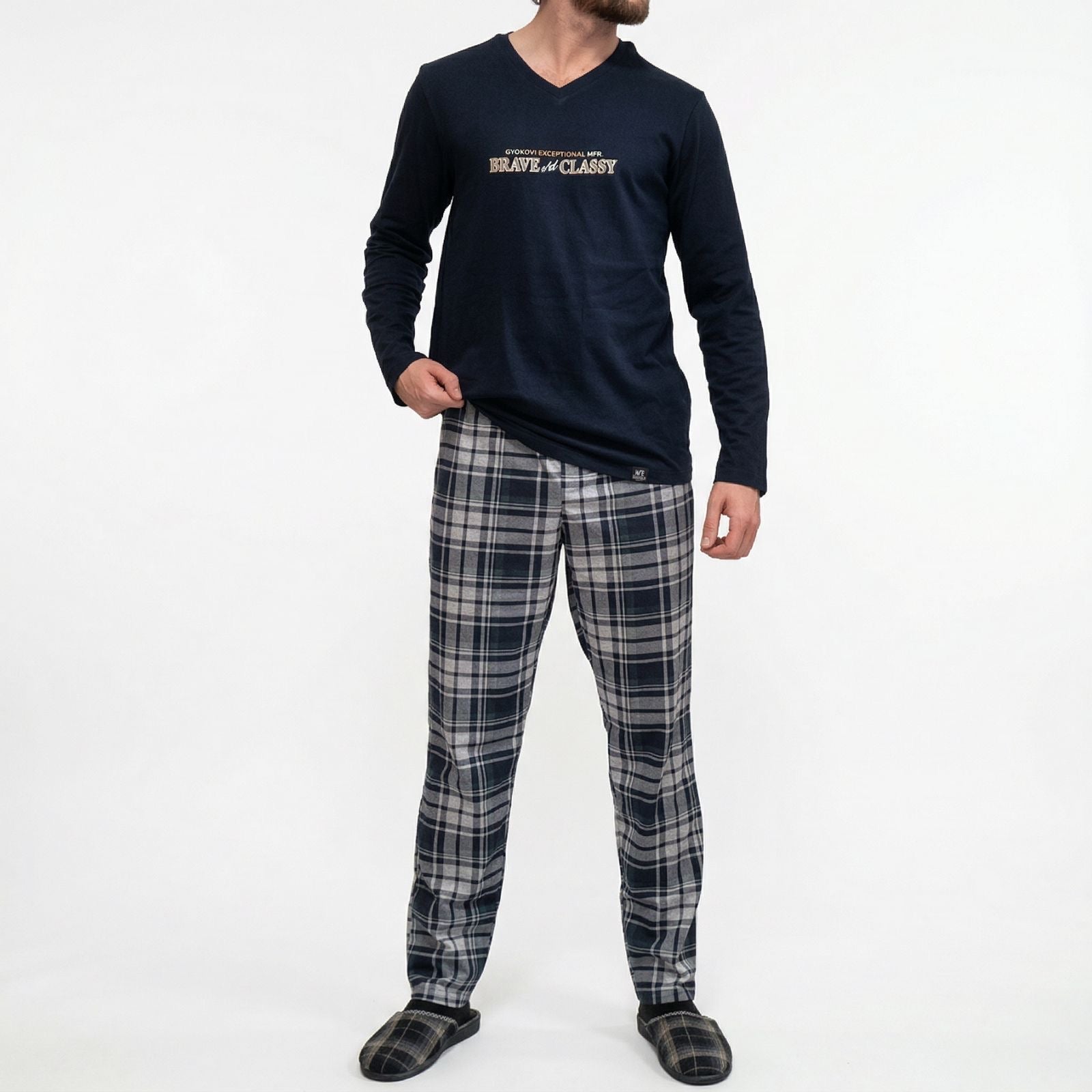 Мъжка пижама изработена от 100% памук с дълъг ръкав и дълго карирано долнище.